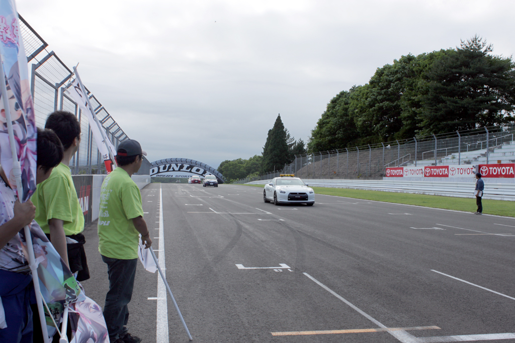 R35GT-Rに引き連れられ先頭で入場しグリッドへ