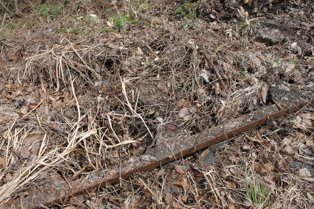 車に戻る途中、ふと見ると廃レールを利用した梯子状の物が放置されてました。