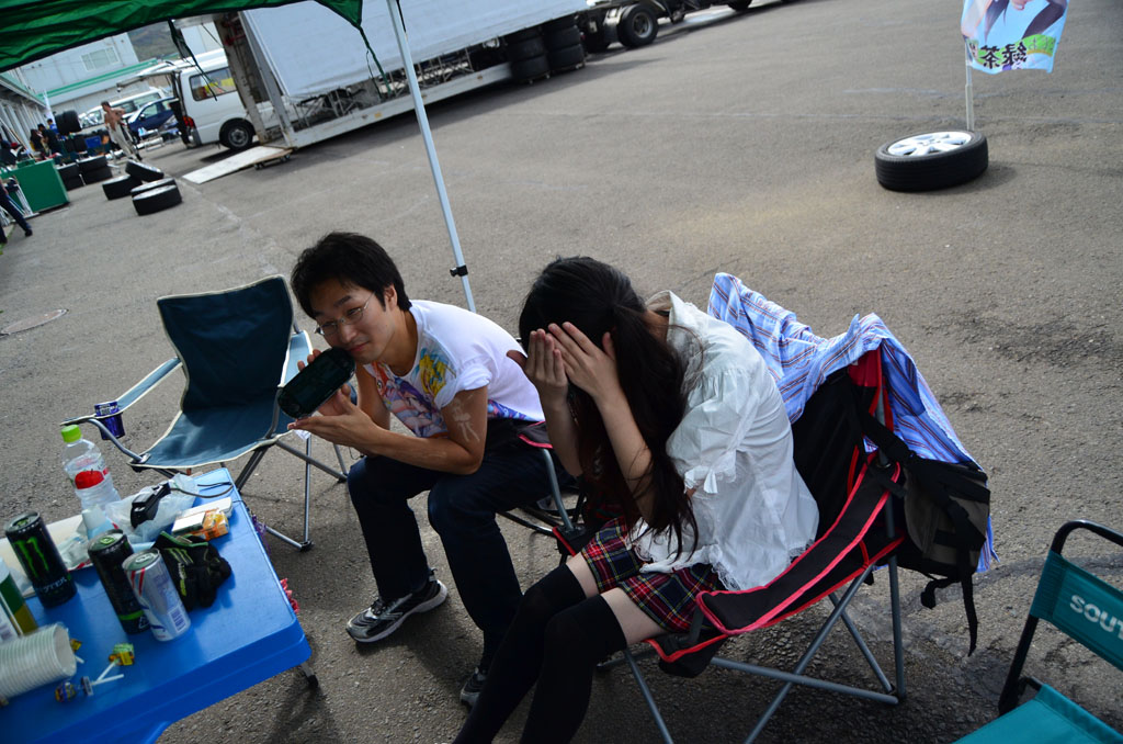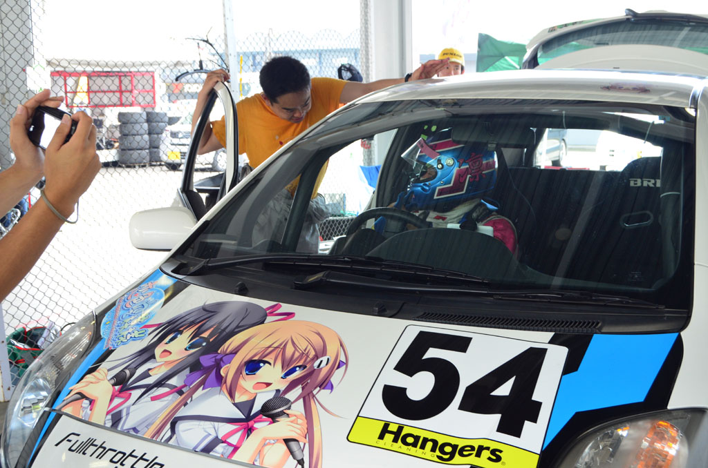 予選出走前に、昨年のSCP10クラスでランキング争いをした岩本さんがピットに遊びにきました。