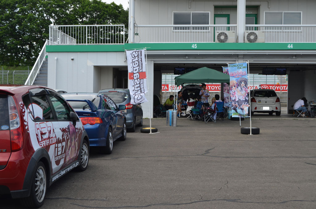 途中、コンビニで食料を調達し、6時過ぎにSUGO到着。