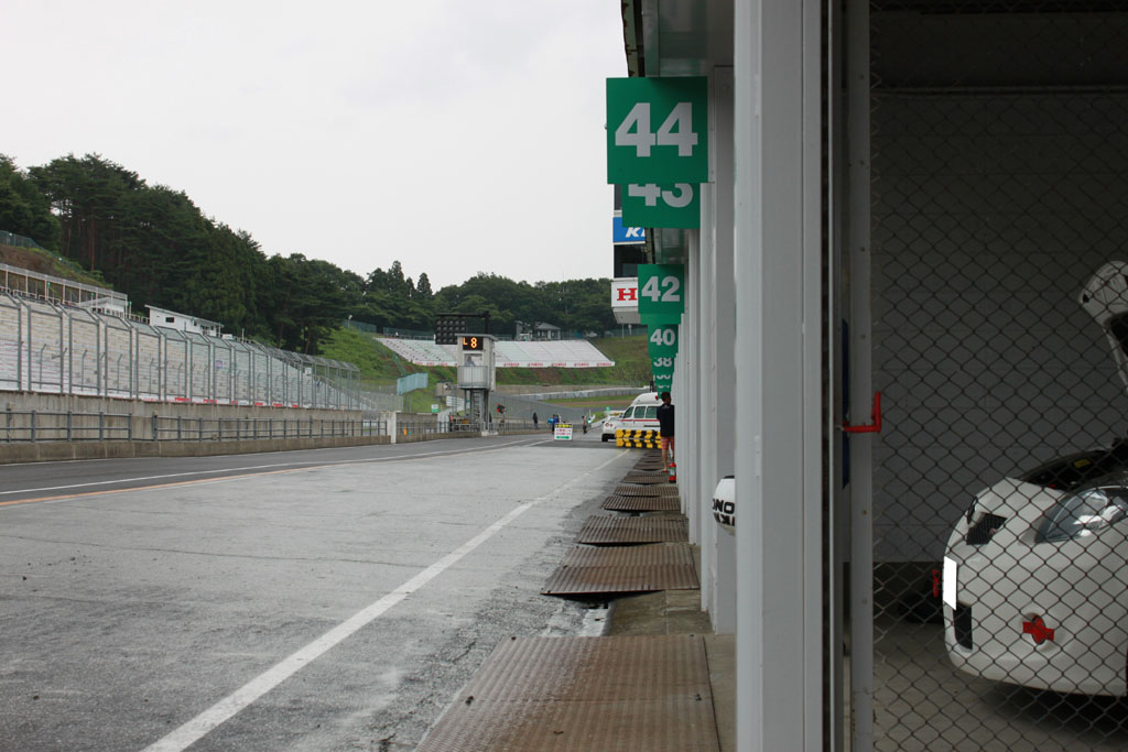 ピット周辺を散策したりしてると、雨が降り出してきました…