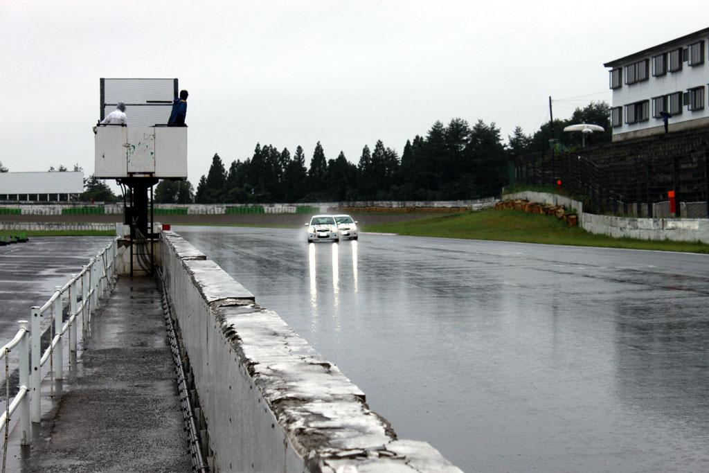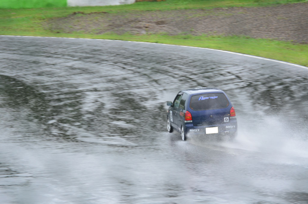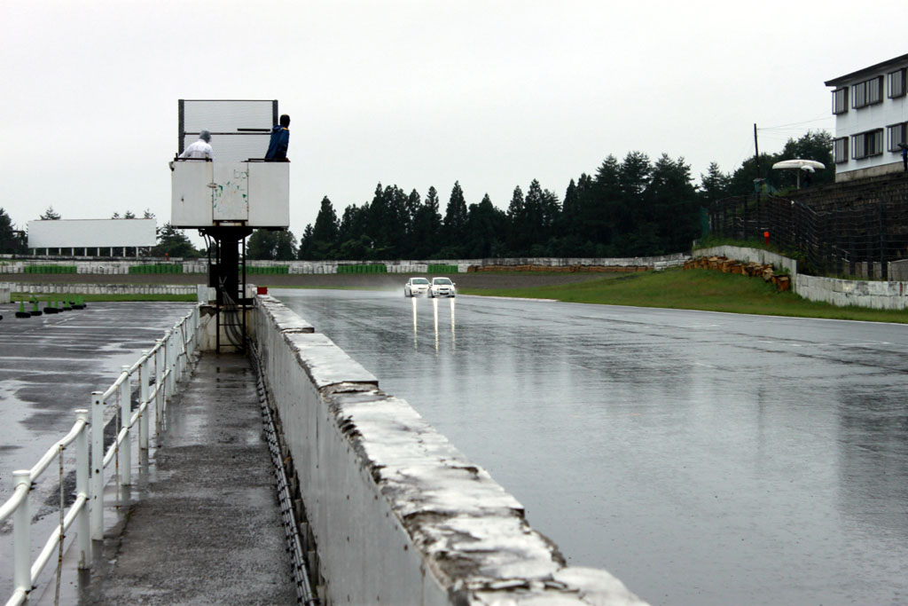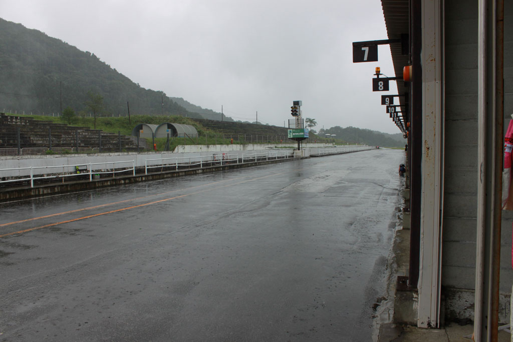 この時点で本降りになり、バックストレートエンドのS字が水没。