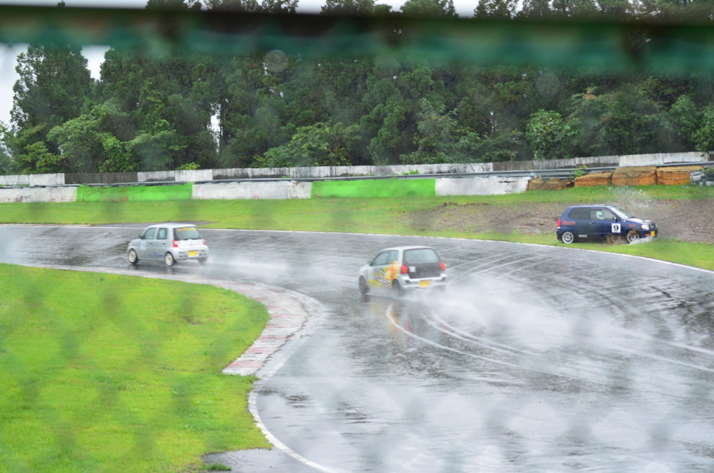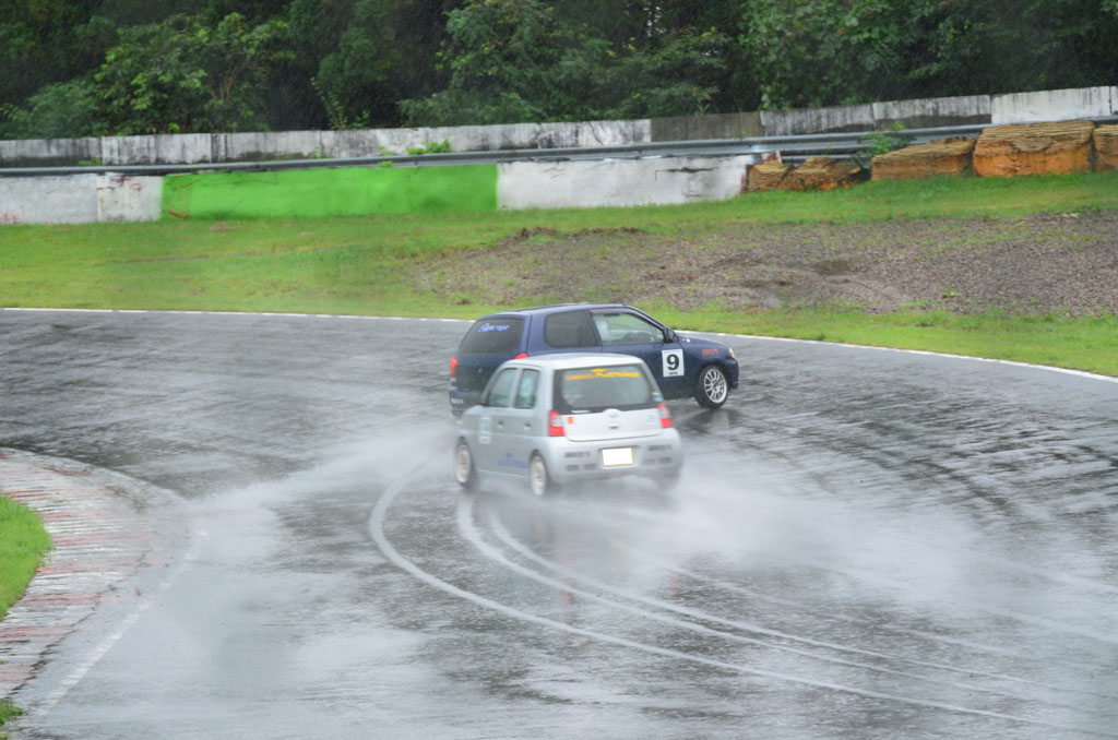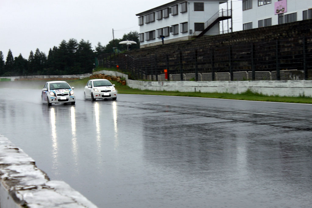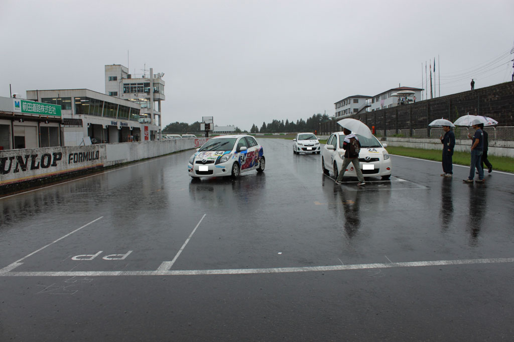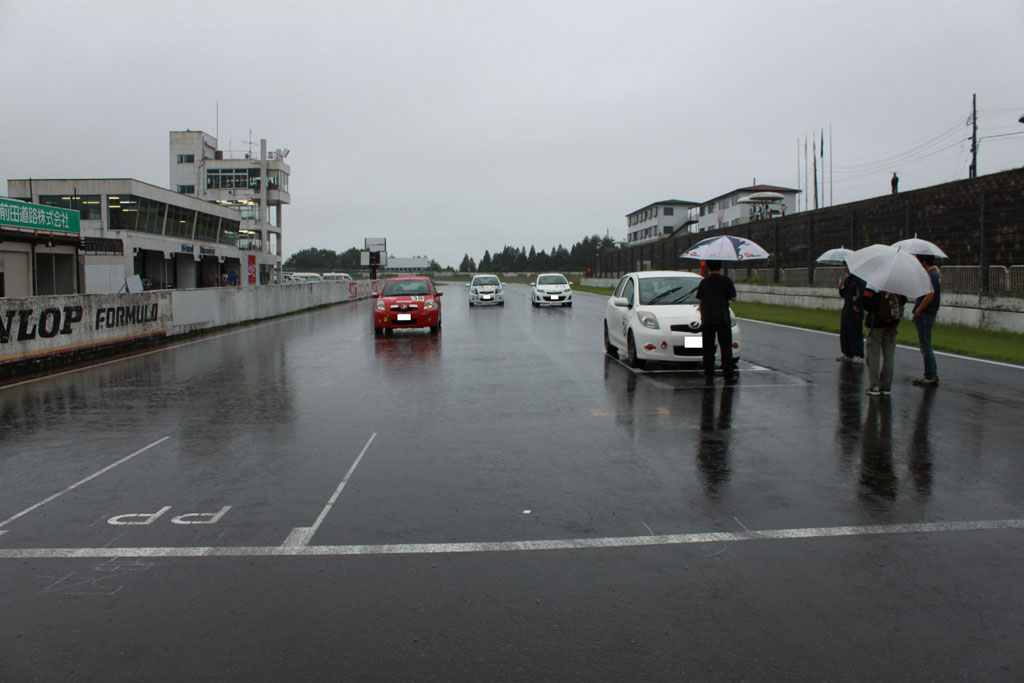 この時点で本降りになり、バックストレートエンドのS字が水没。
