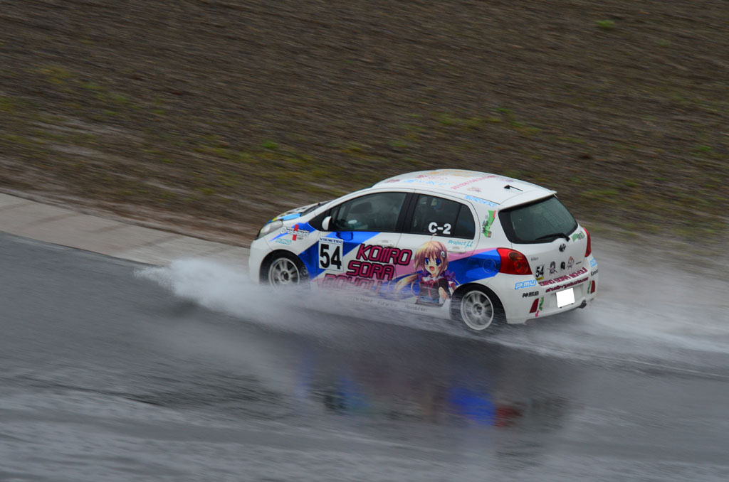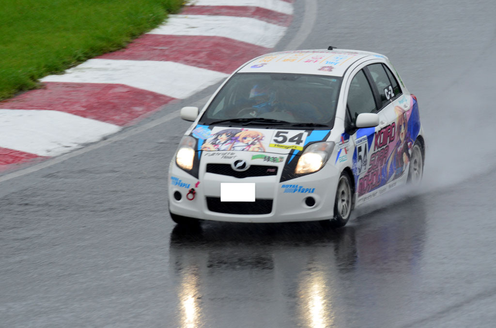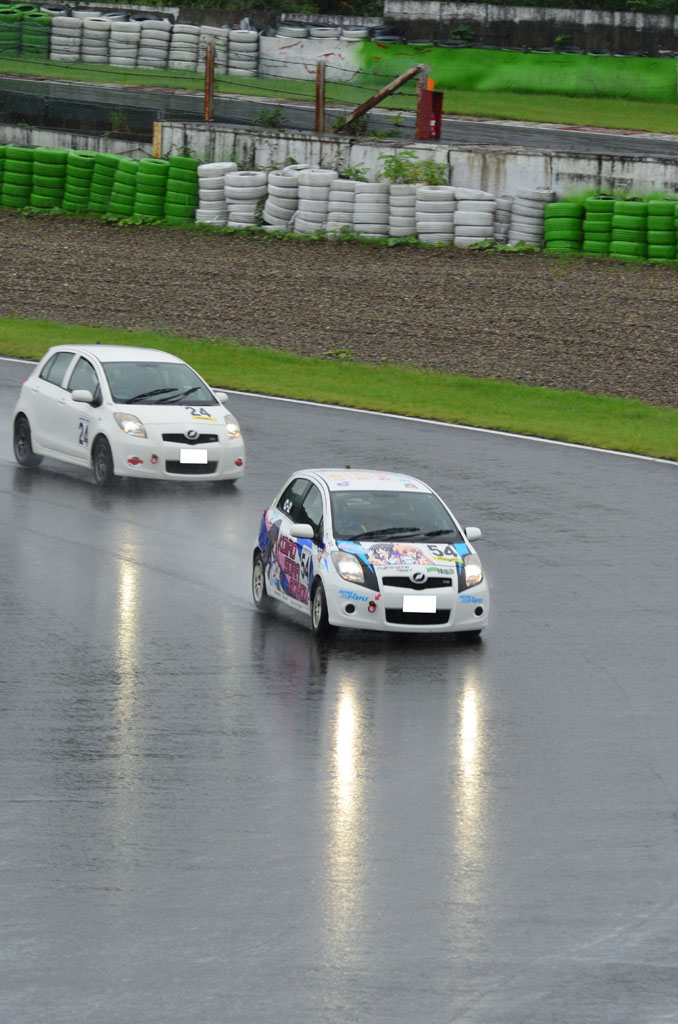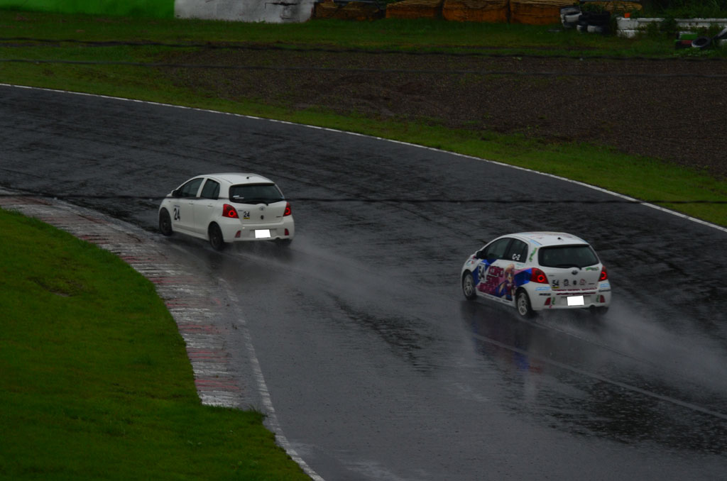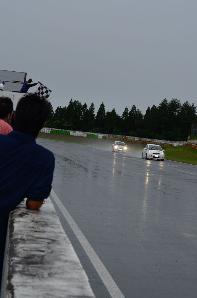 このまま天候とタイヤを生かして逃げ切る予定だったのが、ウェットラインで走ってきた後続に最終コーナーで追いつかれる。