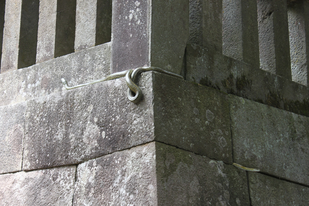 戻る途中、楼門の石垣に蛇が居るのを発見。