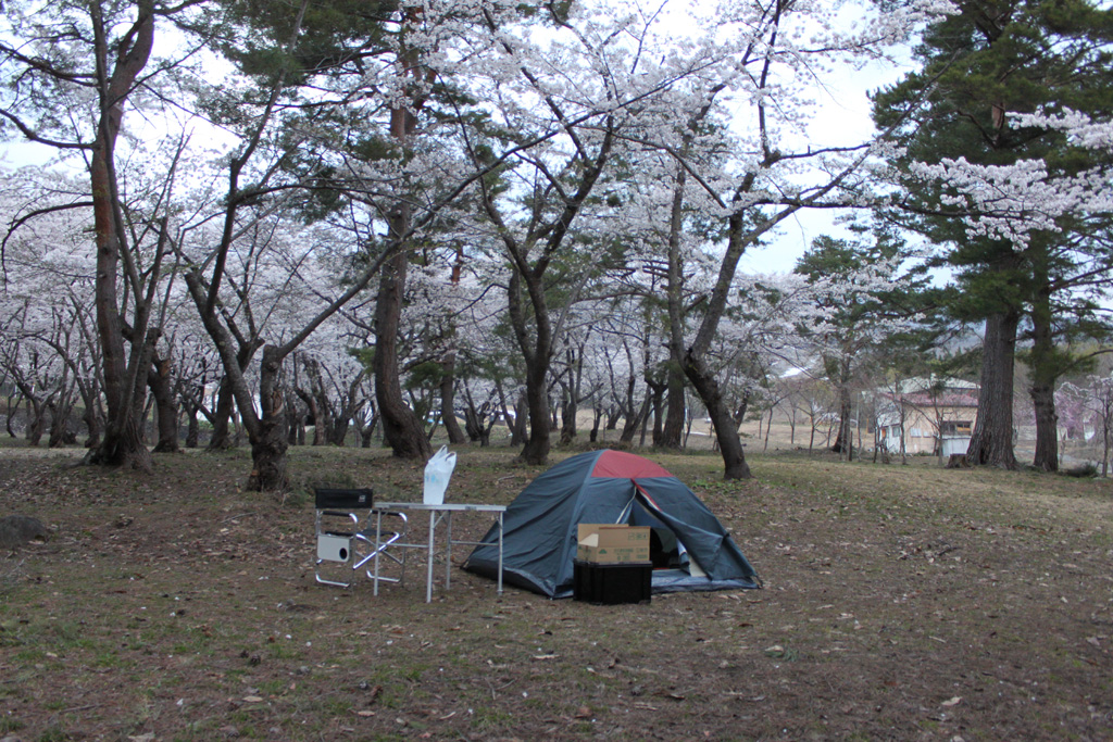 暫し駄弁って解散し、キャンプ地の桜林公園へ行って設営。
