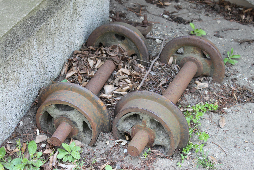 隣接する公園には、森林鉄道王国の秋田だけあって、トロッコの車輪があったり。