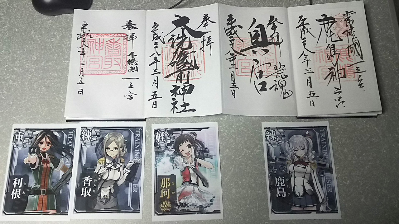 軽巡那珂の大洗磯先神社、重巡利根&練習巡洋艦香取の香取神宮。